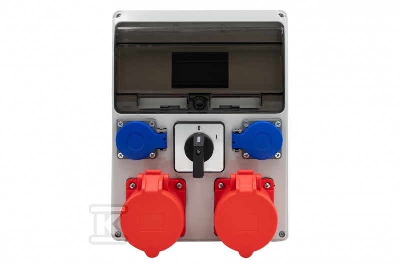 Ця розподільна коробка оснащена двома простими розетками 32A/5P та двома розетками 230V, що забезпечує універсальність при підключенні різного обладнання. Номінальний струм 32A дозволяє обслуговувати пристрої з більшим споживанням енергії. Конструкція розподільної коробки полегшує монтаж та доступ до окремих елементів, що спрощує як встановлення, так і подальше обслуговування.