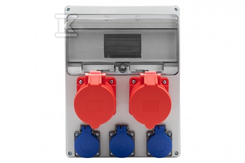 Цей розподільний щит розроблено з урахуванням гнучкості. Він має два прямих гнізда 32/5 та три гнізда 230V, що дозволяє підключати різноманітне обладнання. Конструкція з 11 модулями дає можливість розширити інсталяцію в майбутньому. Міцне виконання гарантує довговічність та надійність, а ступінь захисту IP44 забезпечує безпеку використання навіть у вологих приміщеннях.