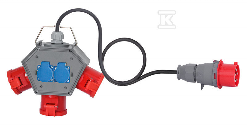 Розподільна коробка POLYBOX - розетки 3x32A 5p, 2x230V, вилка 32A 5p, OPD 5x4mm² /10m/ F3.0648