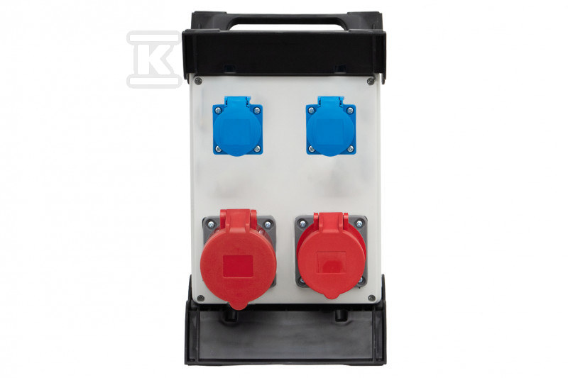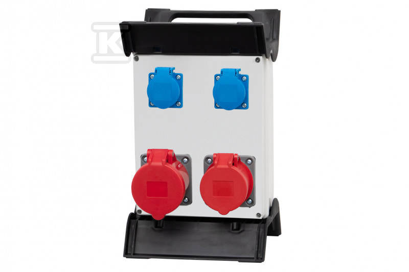 Цей розподільний щит розроблено з урахуванням зручності використання та легкості монтажу. Два гнізда 32A/5P дозволяють підключати пристрої з більшим споживанням потужності, такі як зварювальні апарати або печі, а два гнізда 230V підійдуть для стандартного побутового або офісного обладнання. Обладнаний вимикачем L/P з номінальним струмом 32A, забезпечує додатковий захист інсталяції.