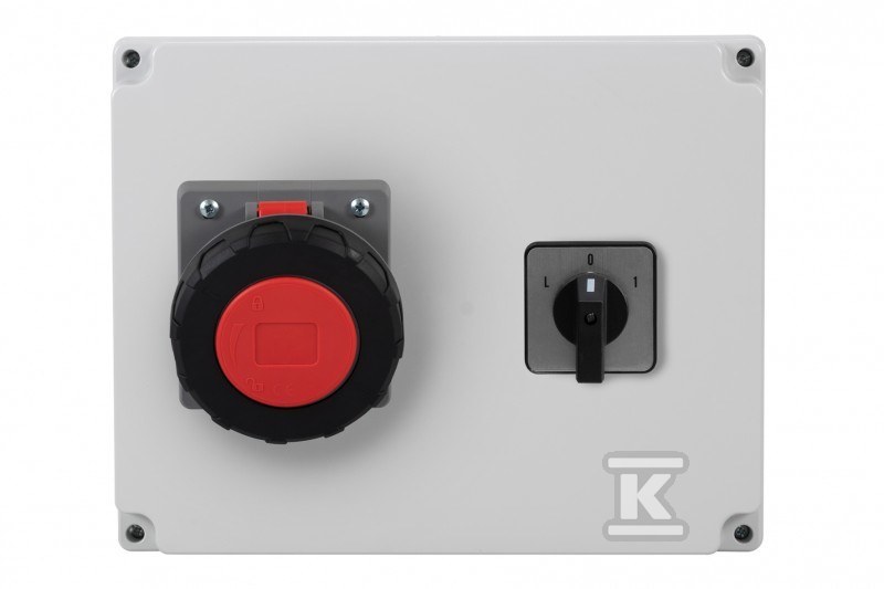 Ця розподільна коробка оснащена одним гніздом 63A 5-контактним та вимикачем 0/1, що дозволяє легко та безпечно відключати живлення. Ступінь захисту IP44 гарантує захист від потрапляння твердих тіл та бризок води, що робить її ідеальною для застосування всередині будівель, але також у місцях, схильних до вологи. Конструкція розподільної коробки забезпечує легкий монтаж та доступ до внутрішніх елементів, полегшуючи обслуговування та можливий ремонт.