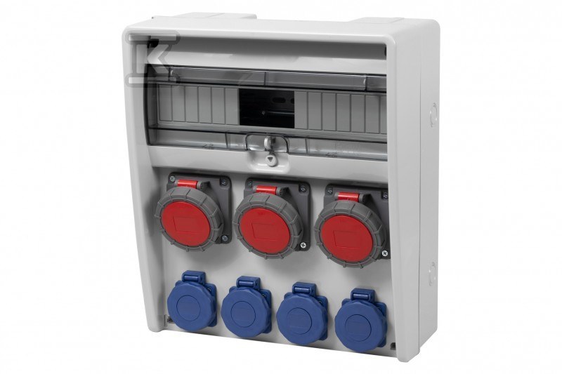 Цей розподільний щит пропонує широкий спектр монтажних можливостей завдяки 17 модулям, що дозволяє встановлювати різноманітні захисні пристрої та обладнання. Він оснащений двома розетками 16A 5-полюсними, однією розеткою 32A 5-полюсною та чотирма однофазними розетками 230V, що забезпечує універсальність застосування. Корпус зі ступенем захисту IP65 гарантує захист від пилу та струменя води, що робить його придатним для використання всередині та зовні приміщень. Завдяки цьому його можна використовувати в майстернях, виробничих цехах, а також на відкритих територіях.