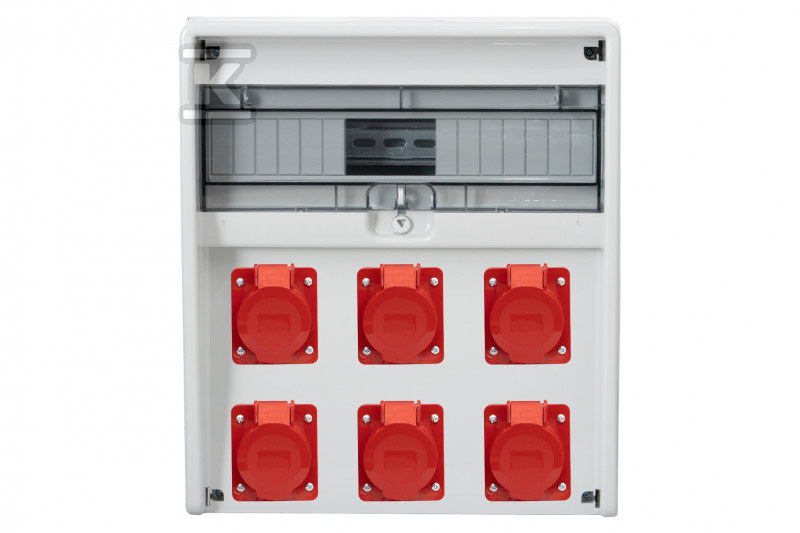 Розподільний щит оснащений трьома розетками 16A 5P та трьома розетками 32A 5P, що забезпечує гнучкість при підключенні різноманітних пристроїв. Ступінь захисту IP65 корпусу та IP44 розеток захищає від впливу зовнішніх факторів, таких як пил і волога, що підвищує безпеку використання навіть у складних умовах.
