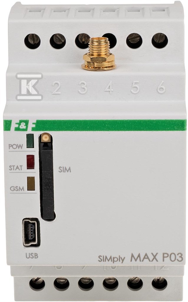 Реле дистанційного керування GSM (SMS), 2xNO, 2xNC, керування температурою, 230V AC, 2x1NO/NC, монтаж на DIN-рейку SIMplyMAX-P03 SIMPLYMAX-P03