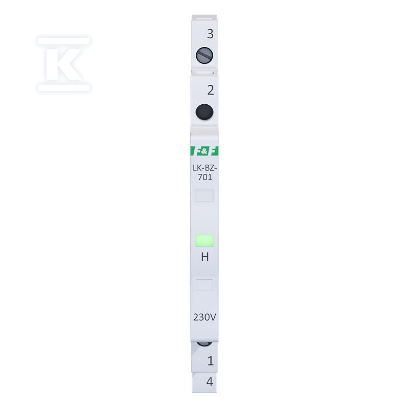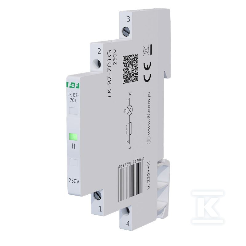 Індикатор живлення LK-BZ-701G – це надійний і простий у монтажі пристрій, що сигналізує про наявність напруги 230V. Ідеально підійде як для домашніх, так і для промислових інсталяцій, де ключова швидка візуальна ідентифікація стану живлення. Її компактний розмір – всього 1/3 модуля – дозволяє заощадити місце в розподільчому щиті.