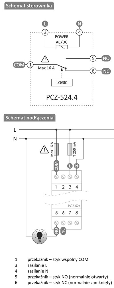 Програмований астрономічний таймер PCZ-524.4, 1-канальний, програмування через NFC ANDROID та iOS 24÷264 V AC/DC 1 × NO/NC 16A