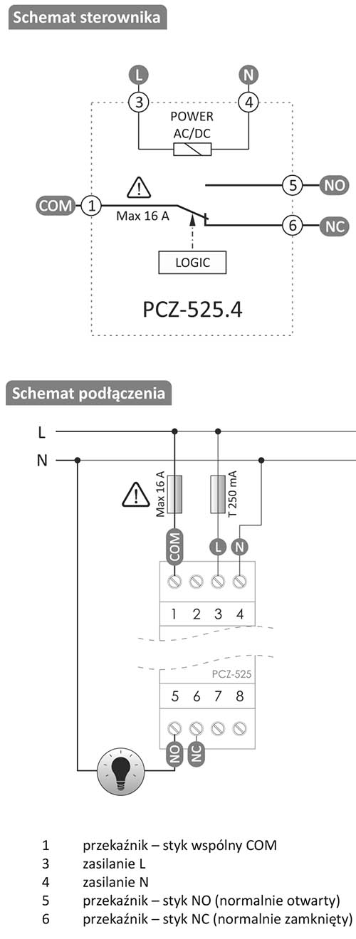 Програмований астрономічний таймер з програмованою нічною перервою PCZ-525.4, 1-канальний, програмування через NFC ANDROID та iOS 24÷264 V AC/DC 1 × NO/NC 16A
