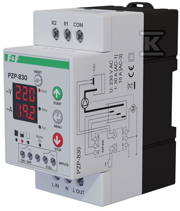 PZP-830 – це універсальний пристрій, який підходить для різноманітних застосувань, пов'язаних з забором води зі свердловин або резервуарів. Він може працювати з двома або трьома зануреними датчиками у свердловині, а також із зовнішнім датчиком (наприклад, поплавковим), який сигналізує про переповнення резервуару. Завдяки цьому можливе точне керування роботою насоса залежно від рівня води, забезпечуючи оптимальне використання ресурсів і мінімізуючи ризик пошкоджень. Реле контролює напругу та струм двигуна, реагуючи на відхилення та захищаючи його від перегріву або занадто низької напруги живлення.