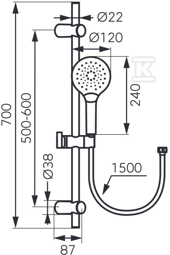 Набір MULO пропонує широкий спектр можливостей для адаптації до індивідуальних уподобань. Ручний душ оснащений трьома режимами струменя – дощ, масаж та змішаний – дозволяючи насолоджуватися розслаблюючою ванною або швидким душем. Перемикання між режимами відбувається за допомогою інтуїтивно зрозумілої кнопки „click”. Душовий шланг довжиною 1500 мм забезпечує свободу рухів, а його конструкція з PVC мінімізує ризик скручування. Рухомий металевий стрижень з регульованим тримачем дозволяє точно налаштувати ручний душ, адаптуючи струмінь води до ваших потреб. Регулювання відстані між кріпленнями (500-600 мм) полегшує монтаж навіть у існуючих отворах у стіні.