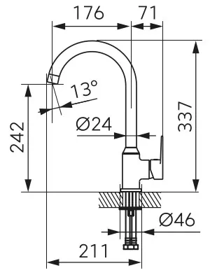Обертовий вилив дозволяє вільно направляти потік води, що особливо корисно під час миття великого посуду або наповнення каструль. Висота змішувача (337 мм) та висота виливу води (242 мм) забезпечують зручність використання навіть для людей різного зросту. Дальність виливу (176 мм) дозволяє вільно оперувати в просторі мийки. Змішувач RITTO відповідає вимогам акустичної групи II та класу потоку A, що гарантує тиху роботу та ефективне використання водних ресурсів.