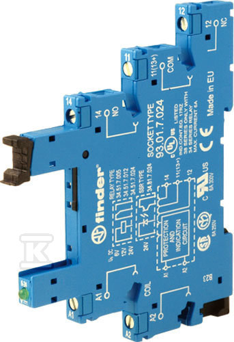 Гніздо вузькопрофільне 62 мм для реле серії 34, виконання для ДОВГИХ ЛІНІЙ 30-240VAC. Затискачі гвинтові, монтаж на DIN-рейку 93.01.3.240