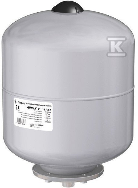 Розширювальний бак мембранного типу AIRFIX-P-5, 5л, 3.5/10 бар, з'єднання різьбове G3/4"M, сірий RAL 9006, для систем ГВП та охолодження, вертикальний. 24852