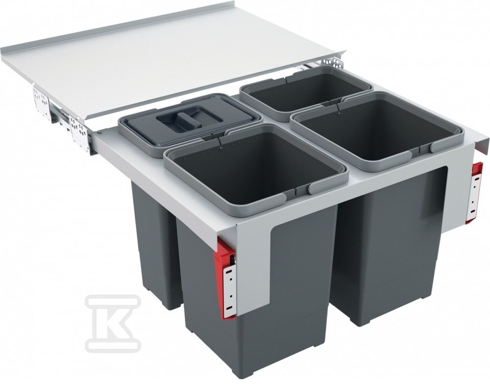 Конструкція сортувальника була продумана з точки зору максимальної зручності використання. Направляючі з плавним закриванням забезпечують плавне та безшумне відкривання та закривання, що особливо важливо у відкритих кухонних просторах. Крім того, сортувальник має адаптер, що дозволяє монтувати його в шафах різної товщини стінок (16-19 мм), що полегшує його встановлення в різних типах кухонних меблів. Варто зазначити, що при монтажі в шафці під мийку рекомендується докупити універсальне подовження (доступне як аксесуар).