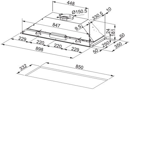 Витяжка для вбудовування в шафку BoxFBI 931H XS Нержавіюча сталь 305.0545.462