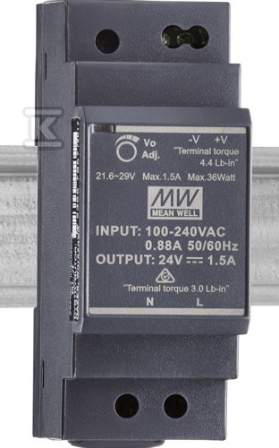 Блок живлення характеризується компактними розмірами (35 x 90 x 54,5 мм), що дозволяє легко монтувати навіть у обмеженому просторі. Низьке споживання потужності в стані спокою (менше 0,3W) сприяє економії енергії та зменшенню експлуатаційних витрат. Максимальний вихідний струм постійний становить 1,5A, що дозволяє живити пристрої потужністю до 30W.