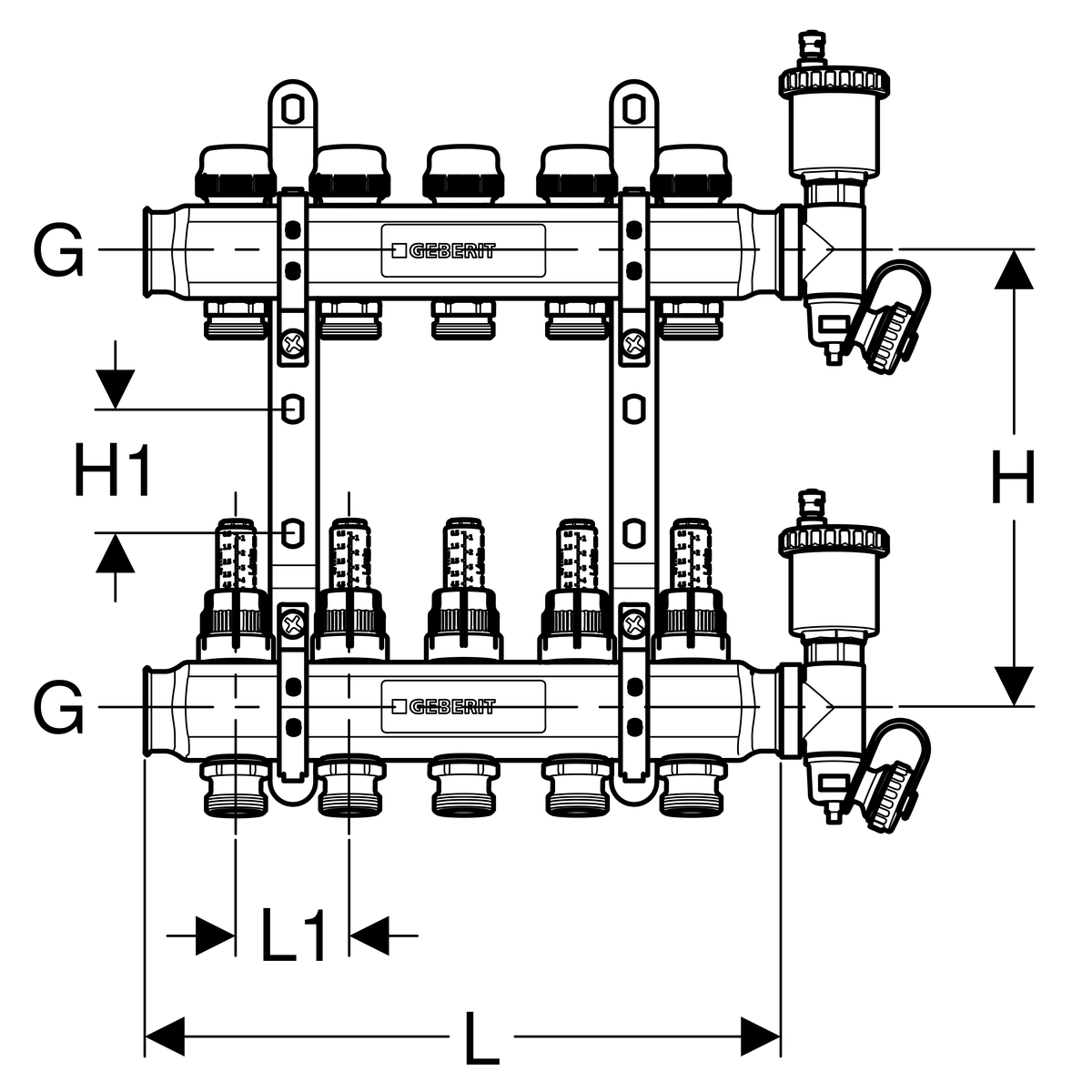Колектор Geberit для теплої підлоги: нержавіюча сталь G1"x4 652.522.00.1