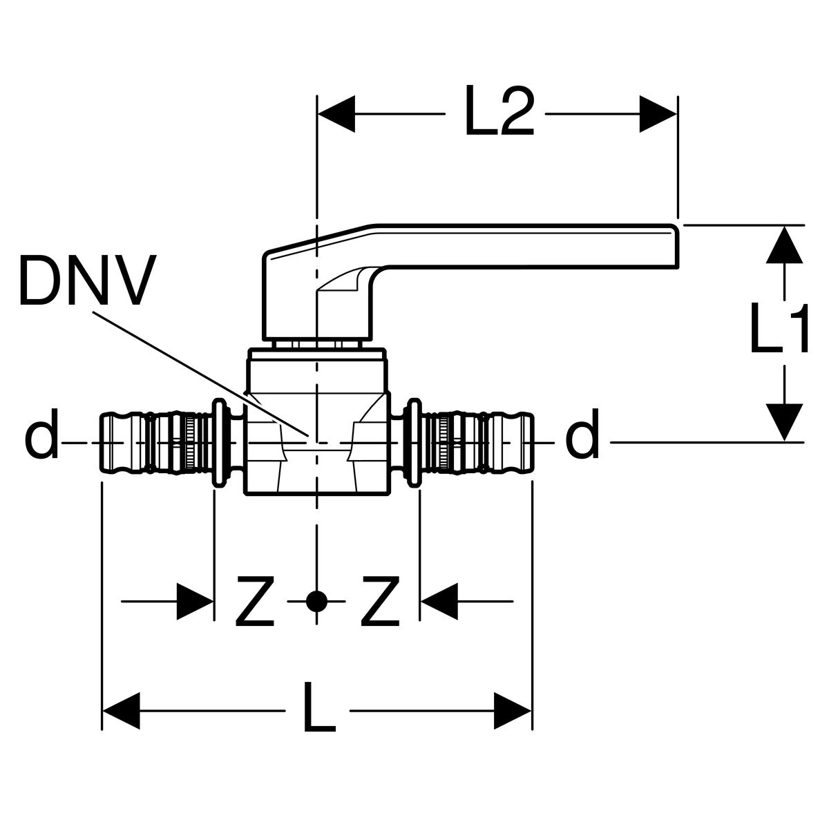 Кран кульовий Geberit Mepla з приводним важелем, d50 606.020.00.2