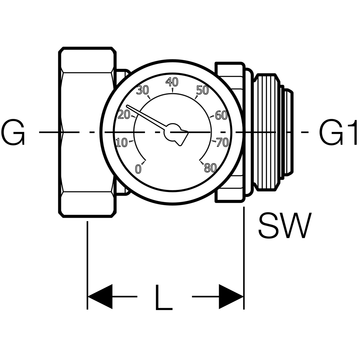 Різьбовий ніпель Geberit з гайкою та термометром: G1 1/4" нікельований 652.419.22.1