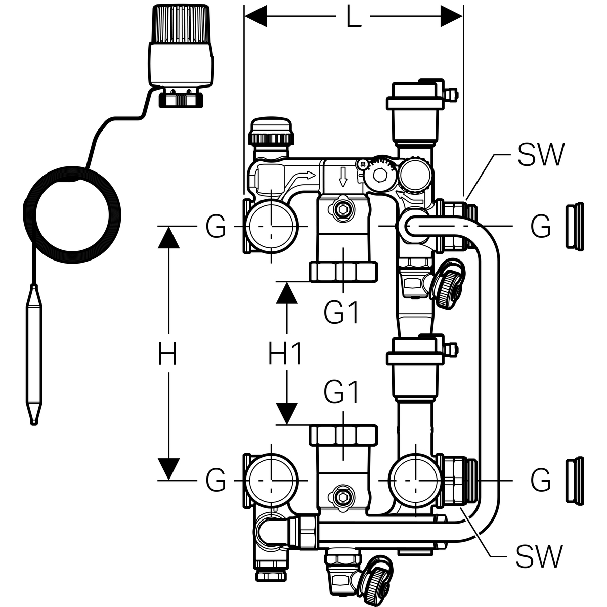 Регулятор температури Geberit для розподільника: G1" нікельований 652.413.22.1