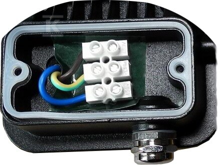 Корпус виготовлений з алюмінію, пофарбованого в чорний колір, що забезпечує не тільки естетичний вигляд, але й стійкість до корозії. Загартоване скло захищає світлодіоди від механічних пошкоджень та впливу атмосферних умов. Клас захисту IP65 гарантує пилонепроникність та водонепроникність, що дозволяє безпечно використовувати його на вулиці. Вбудований клемний блок (для провідників 3 x 1,5 мм²) полегшує монтаж та усуває необхідність використання додаткових з'єднувачів IP65 – заощаджуючи час та гроші. Завдяки цьому встановлення є простим та швидким.