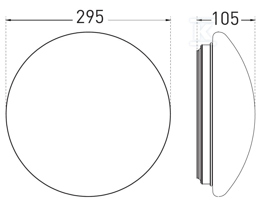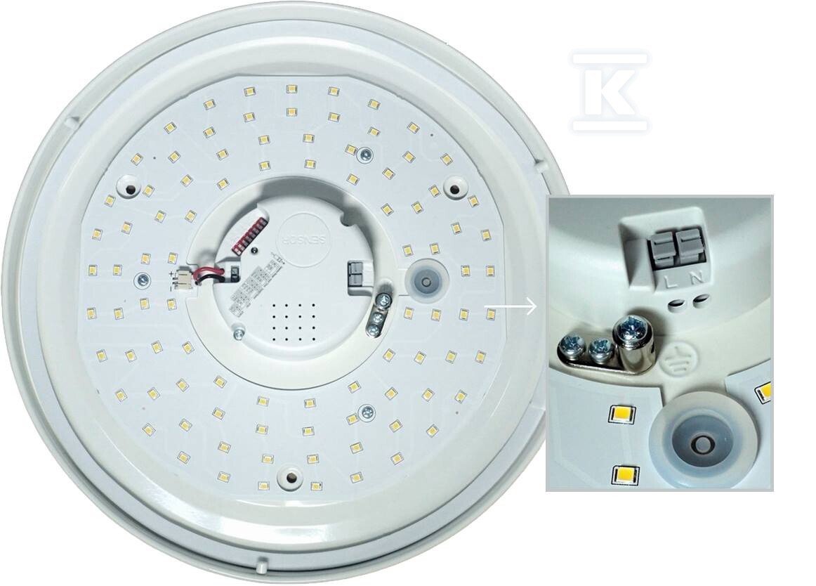 Світильник виготовлений з міцного сталевого листа з молочним розсіювачем з пластику (PMMA), який забезпечує рівномірне розсіювання світла. Його універсальний дизайн пасує до багатьох стилів інтер'єру. Завдяки ступеню захисту IP44, світильник стійкий до вологи та пилу, що дозволяє його встановлювати у ванних кімнатах, кухнях, а також на зовнішніх будівлях – під навісом. Вбудований мікрохвильовий датчик HF гарантує надійну роботу навіть у складних умовах.