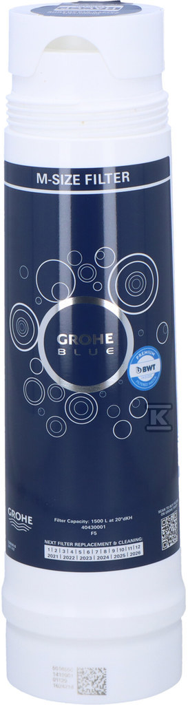 Фільтр для GROHE Blue фільтр для систем GROHE Blue Ємність 1500 л при 20 ° dKH 5 фазний фільтр 5 фазний фільтр зменшує вміст вапна та важких металів для використання з GROHE Blue Home, GROHE Blue Professional і GROHE Blue Pure (тільки з витратоміром)