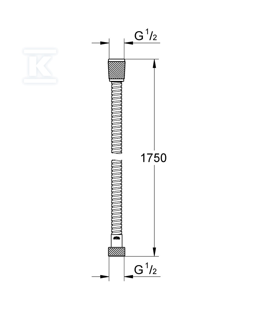 Шланг характеризується універсальним приєднанням G 1/2" x 1/2", що полегшує монтаж у більшості стандартних системах душових. Його довжина 1750 мм забезпечує свободу рухів під час прийняття душу. Міцність на розтягнення до 500 N гарантує стійкість до пошкоджень, спричинених напруженням, а стійкість до температури до 70°C дозволяє використовувати гарячу воду без побоювання деформації шланга. Додатково, конструкція шланга мінімізує ризик скручування, що перекладається на плавне функціонування та зручність використання.