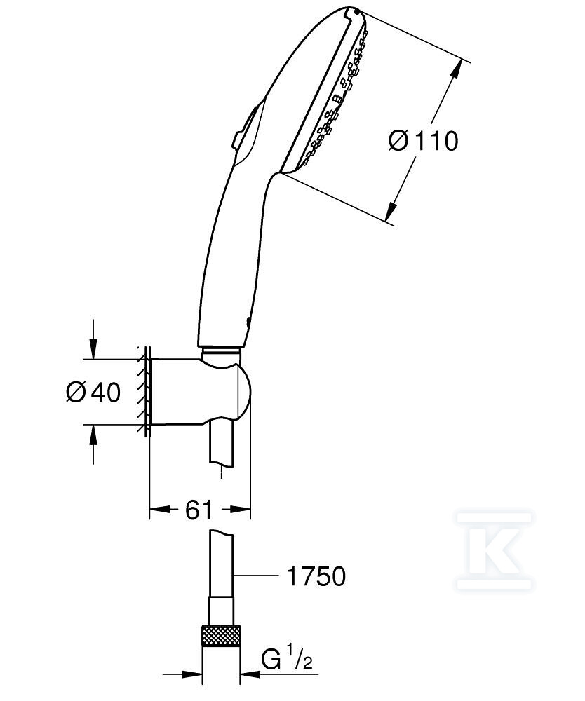 Душовий набір Tempesta 110 хром, 3 струмені, в комплекті: душова лійка, нерегульований настінний тримач, душовий шланг 1750 мм, максимальна витрата води (при 3 барах): 13,5 л/хв 27849003