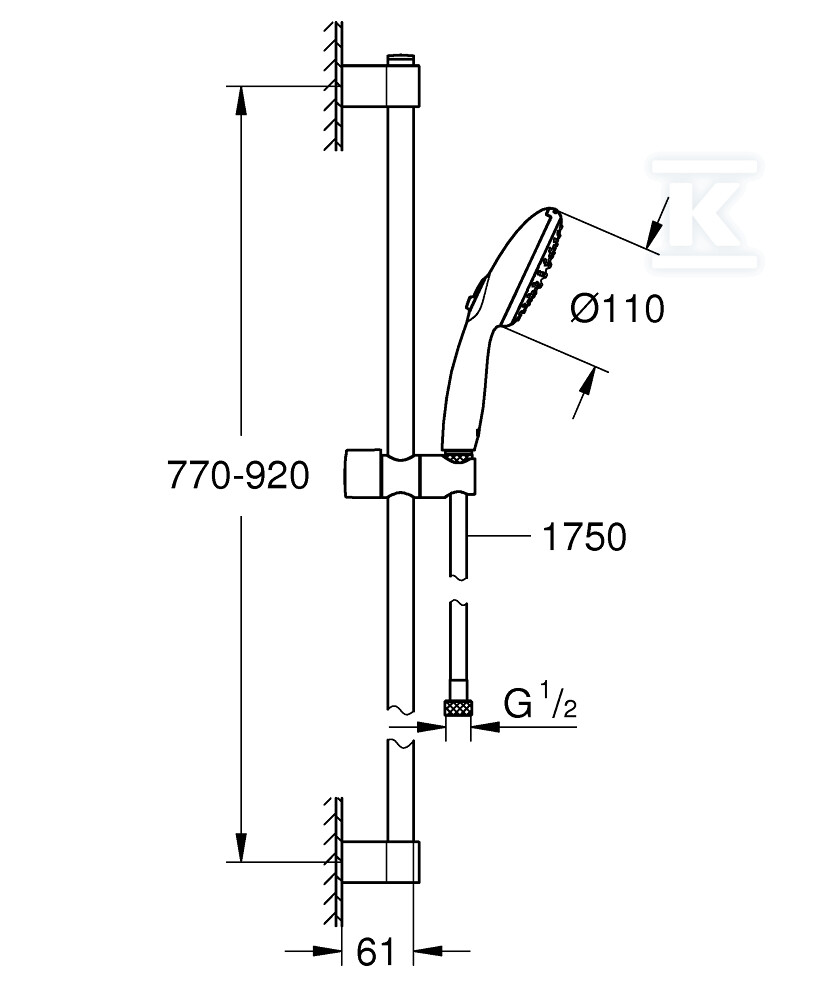 Штанга для душу: Довжина 900 мм забезпечує свободу рухів.