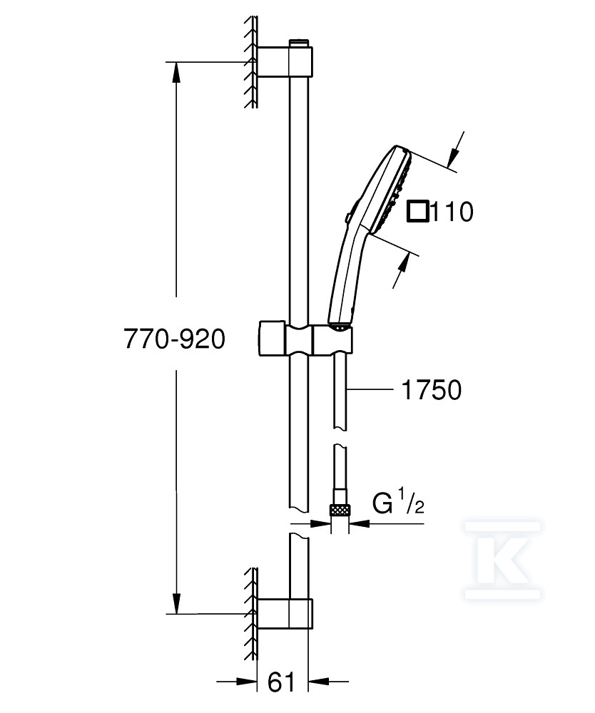 - Легкий монтаж: Система FastFixation полегшує регулювання висоти душової штанги під час встановлення.
