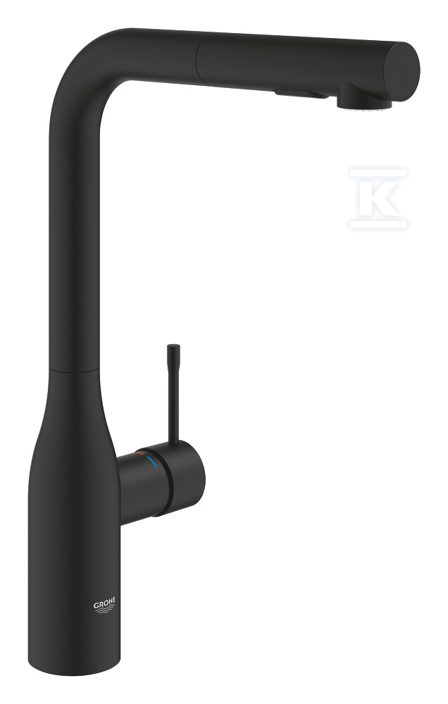 Кухонний змішувач Essence - одноважільний, керамічний картридж 28 мм, 2 струмені, висувний вилив, обертання 360°, чорний матовий 30504KF0