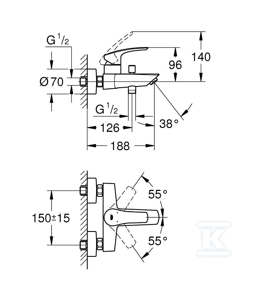 Ця одноважільна ванна батарея серії Eurosmart – це поєднання функціональності, сучасного дизайну та надійної якості. Призначена для настінного монтажу, з металевим важелем, забезпечує точний контроль над потоком і температурою води. Батерея розроблена для обслуговування двох виходів води – ванни та душу, що робить її універсальним рішенням для будь-якої ванної кімнати.