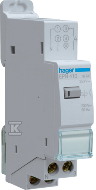 Бістабільне реле EPN410 – це рішення, призначене для імпульсного керування освітлювальними ланцюгами. Його конструкція дозволяє вмикати та вимикати навантаження за допомогою коротких імпульсів, що особливо корисно в системах керування освітленням, де потрібна зміна стану без необхідності утримання керуючого сигналу. Таким чином, одне натискання кнопки змінює стан вимикача – вмикає або вимикає ланцюг.