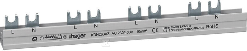 Гребінчасто‑вилкова горизонтальна шина L+N+2 проміжок 1 м 10 мм² 63 A 12 м KDN263AZ