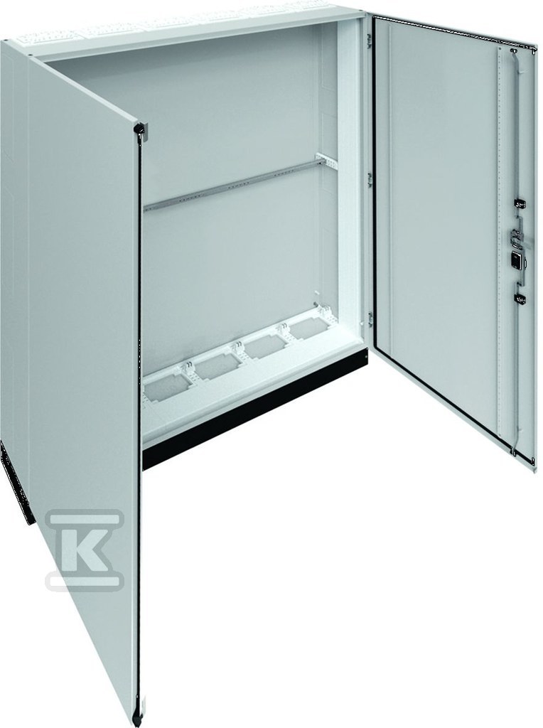 Додатковий цоколь висотою 100 мм піднімає розподільну шафу над рівнем підлоги, що полегшує доступ до кабелів та захищає від вологи. Вся конструкція характеризується високою стійкістю до ударів (IK10), що додатково підвищує безпеку та довговічність пристрою. Можливість розширення дозволяє адаптувати розподільну шафу до мінливих потреб установки.
