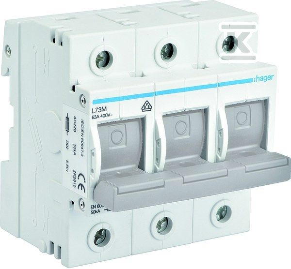 Роз'єднувач ізоляційний з запобіжником D02 – це елемент, який служить для безпечного відключення електричних ланцюгів та захисту від перевантажень і коротких замикань. Модель L73M, з номінальним струмом 63A та напругою 400V, призначена для співпраці з запобіжниками D02. Триполюсна конструкція забезпечує повну ізоляцію та безпеку використання.Пристрій знаходить широке застосування як у домашніх, так і в промислових установках, де потрібен надійний захист електричних ланцюгів. Монтаж на DIN-рейку полегшує інтеграцію з існуючими розподільчими щитами. Компактні розміри (85 мм висоти, 80 мм ширини та 79 мм глибини) дозволяють встановлювати навіть у обмеженому просторі.Роз'єднувач L73M характеризується високою якістю виготовлення та довговічністю, що гарантує тривалу та