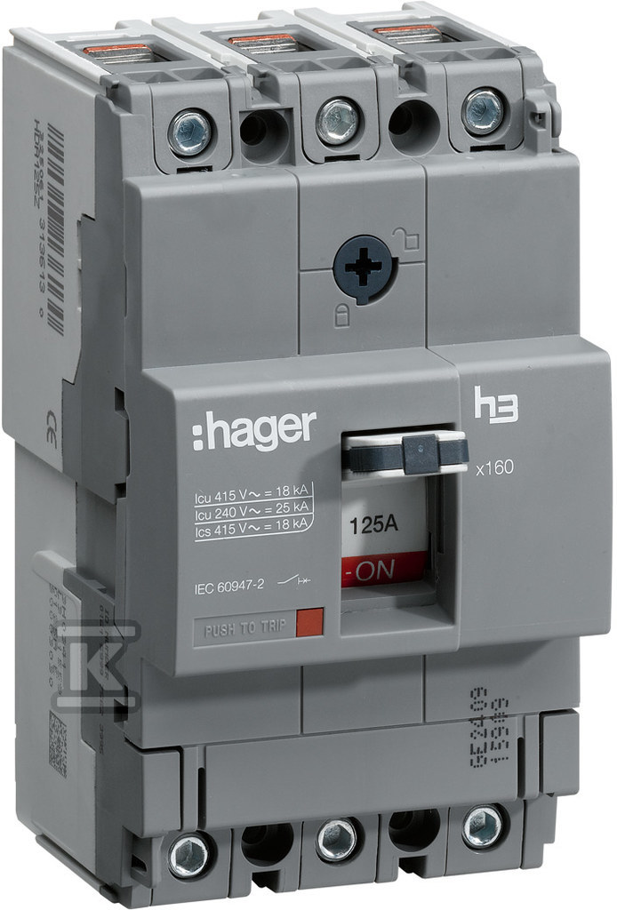 Вимикач потужності HHA080H – це триполюсний пристрій, призначений для захисту електричних установок від перевантажень і коротких замикань. Номінальний постійний струм на рівні 80A та висока здатність відключення короткого замикання 25kA роблять його надійним вибором як для комерційних, так і для промислових установок. Конструкція пристрою, заснована на технології Hager h3, гарантує надійність і тривалий термін служби.