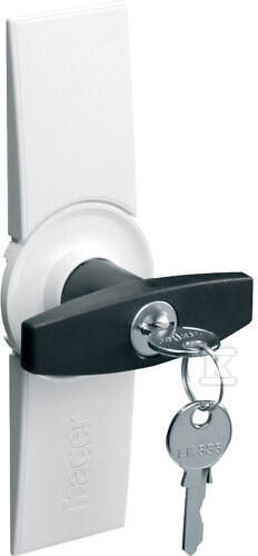 Замок призначений для універсального монтажу в шафах Hager та інших виробників. Поворотна ручка забезпечує зручне відкривання та закривання, а блокувальний механізм забезпечує ефективний захист. Поставляється з двома ключами, що збільшує зручність використання та мінімізує ризик проблем з доступом. Ідеально підійде як для приватних, так і для промислових установок, де потрібен захист доступу до електроустановки.