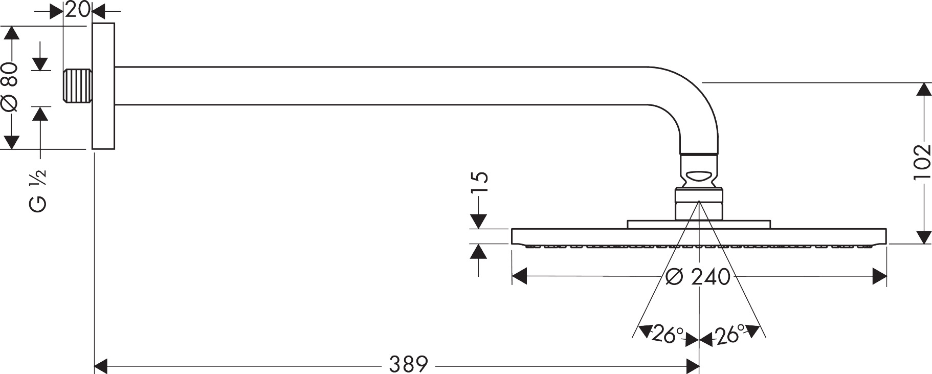 Душова лійка Hansgrohe Raindance Air fi 240 мм DN15, душова ручка 389 мм - хром 27474000