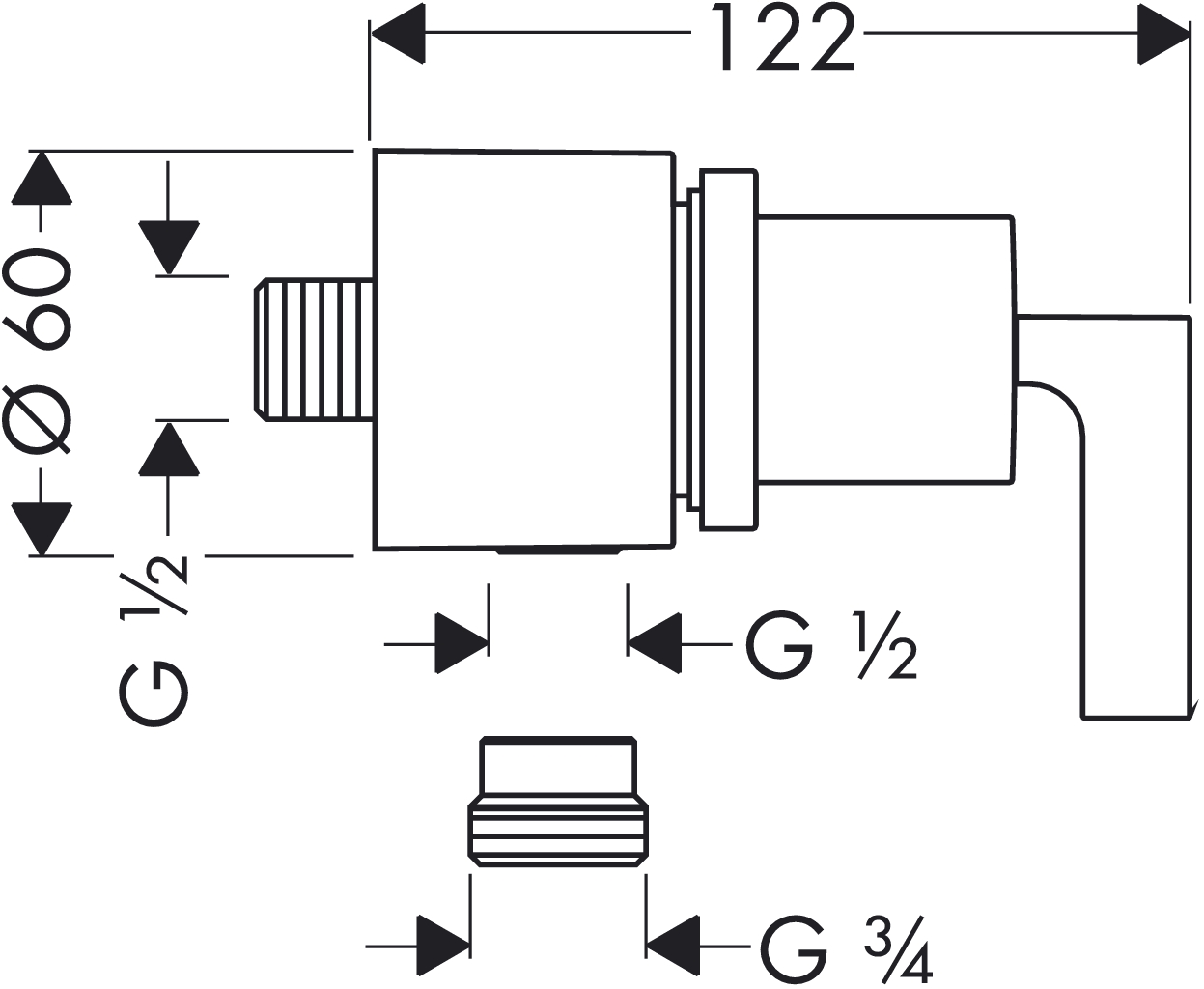 Запірний клапан Fixfit Stop Hansgrohe Axor Citterio - настінний монтаж - з одноплечою ручкою - З'єднання шланга DN15 - Зворотній клапан - колір: хром