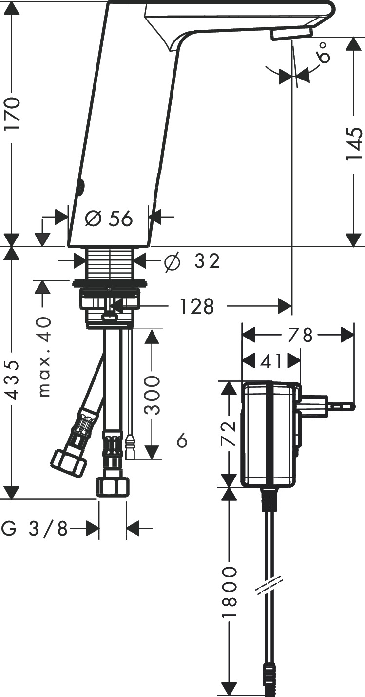 Hansgrohe Автономний інфрачервоний змішувач для раковини Metris S Electronic 230V від мережі 31103000