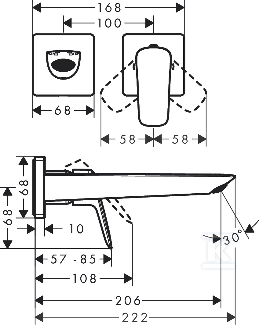 Logis Одноручкова змішувач для раковини Fine з виливом 20,6 см, настінний, прихований, хром. 71256000