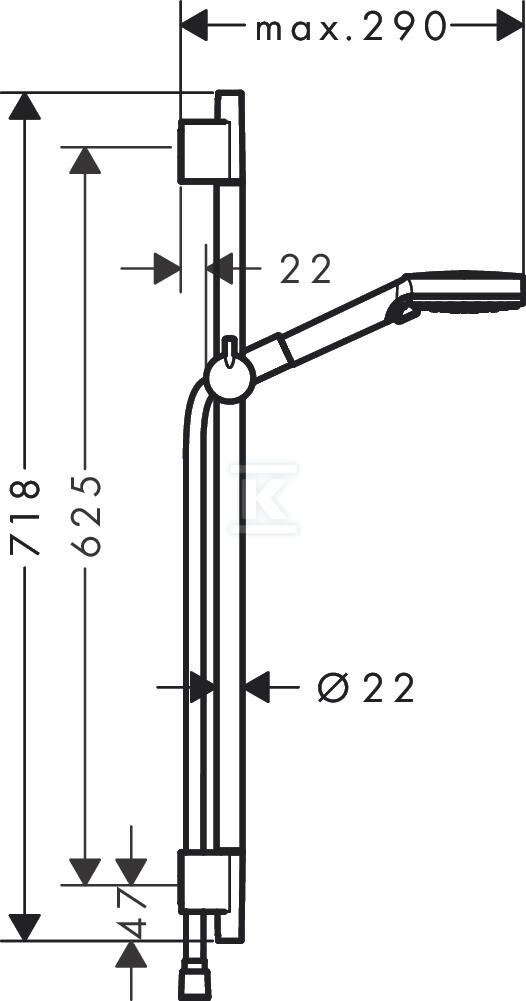 - Конструкція, заснована на штанзі для душу діаметром 22 мм, забезпечує стабільність.