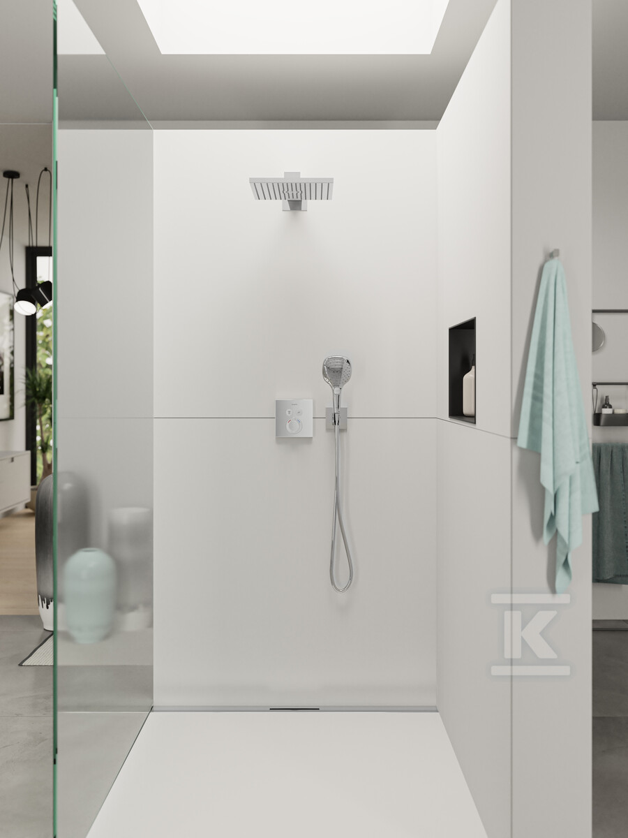 Верхній душ Raindance Select E 120 виготовлений з високоякісного пластику, що гарантує довговічність і стійкість до пошкоджень. Ізольований корпус захищає від перегріву, а фільтр легко промивається, що полегшує обслуговування. Стандартне підключення G ½ забезпечує сумісність з більшістю водопровідних систем. Клас потоку S означає, що душова лійка призначена для використання з проточними водонагрівачами.
