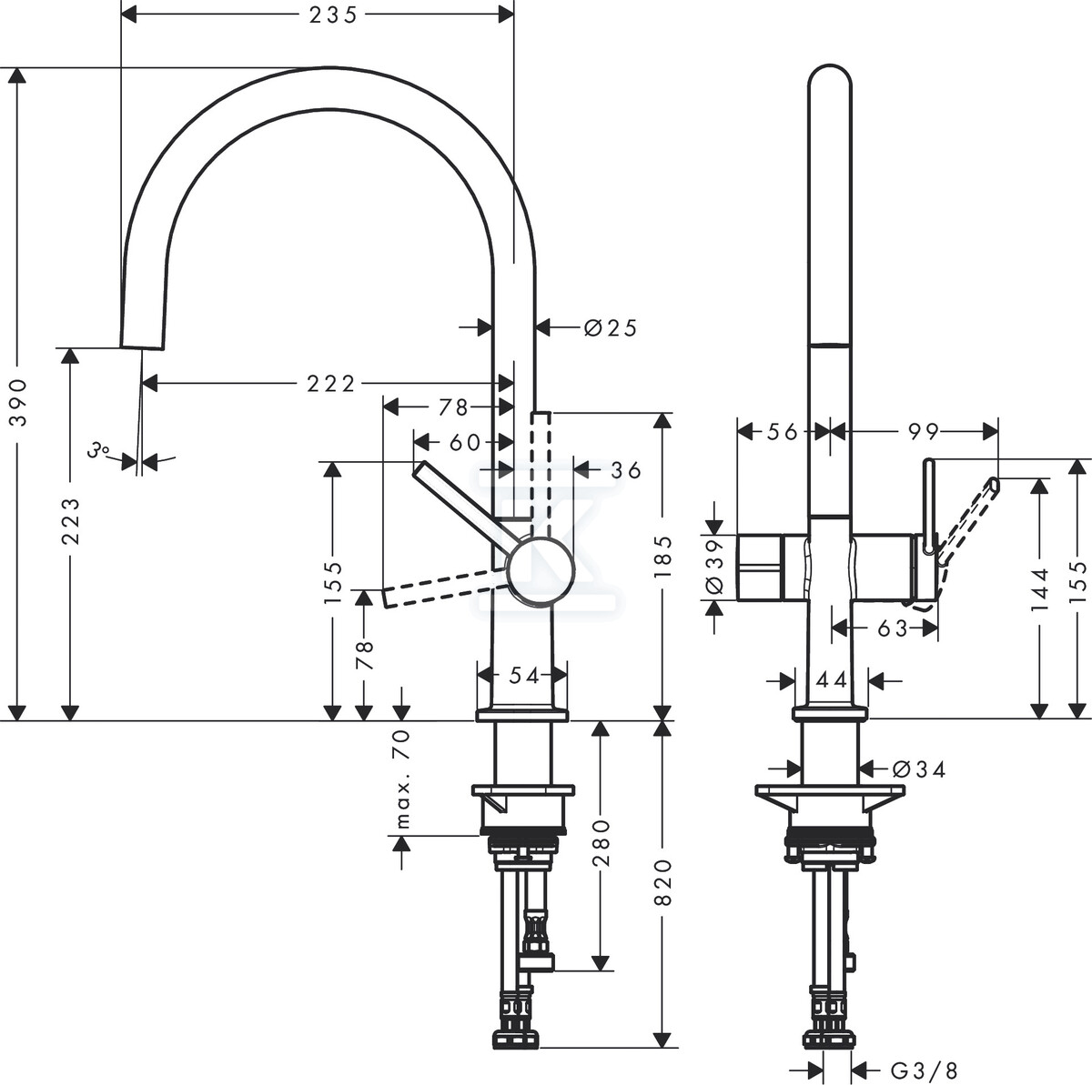 - Легкий монтаж: Стандартні приєднувальні шланги G ⅜ полегшують встановлення. Необхідний отвір діаметром Ø 35 мм.