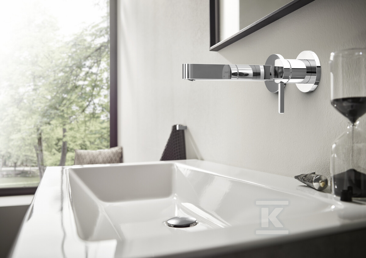 Виготовлена з високоякісної латуні арматура характеризується міцністю та довговічністю. Відстань між осями отворів становить 168 мм, що полегшує підлаштування до стандартних умивальників. У комплекті є повний зливний комплект G 1¼, що усуває необхідність докуповування додаткових елементів. Можливість розташування ручки праворуч або ліворуч на етапі монтажу базового комплекту дає гнучкість під час встановлення та дозволяє підлаштувати арматуру до індивідуальних уподобань. Дифузор від бризок обмежує утворення плям на умивальнику, полегшуючи підтримку чистоти.