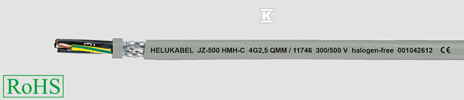 Кабель JZ-500 HMH-C характеризується міцною будовою, що забезпечує довготривалу та надійну роботу. Складається з мідних багатожильних жил, ізольованих безгалогенною сумішшю TI6, скручених паралельно та захищених розділовою фольгою. Екран плетений з луджених мідних дротів (покриття 85%) ефективно захищає від електромагнітних перешкод. Все це оточене безгалогенною оболонкою з суміші TM7 в сірому кольорі (RAL 7001). Жилы пронумеровані цифрами для легкої ідентифікації під час монтажу.