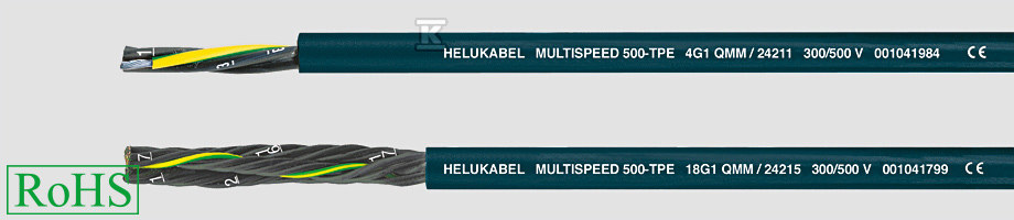 Цей багатожильний гнучкий кабель, позначений як m.SPEED 500-TPE, розроблений для використання в динамічних промислових середовищах. Він характеризується винятковою стійкістю до механічних напружень, стирання та хімічних речовин, що робить його ідеальним вибором для живлення машин та обладнання, що працює у важких умовах. Конструкція кабелю дозволяє вільно прокладати його в кабельних каналах, навіть на великих відстанях і при великій швидкості переміщення.