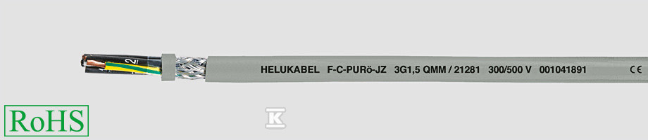 Кабель побудований з семи мідних жил перерізом 1,5 мм², ізольованих спеціальним ПВХ, стійким до олій. Жили скручені паралельно та оточені ізолюючою фольгою та екраном плетеним з луджених мідних дротів (покриття 85%). Все це захищено міцною зовнішньою оболонкою з поліуретану (PUR) сірого кольору (RAL 7001). Додатково кабель має жовто-зелену захисну жилу.