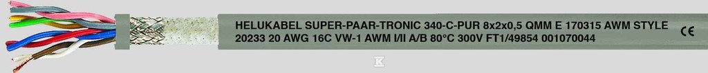 Провід PUR для кабельних трас згідно з UL/CSA SUPER-PAAR-TRONIC-340-C-PUR 4x2x0,5 mm² сірий, жили кольорові згідно з DIN 47100 49851